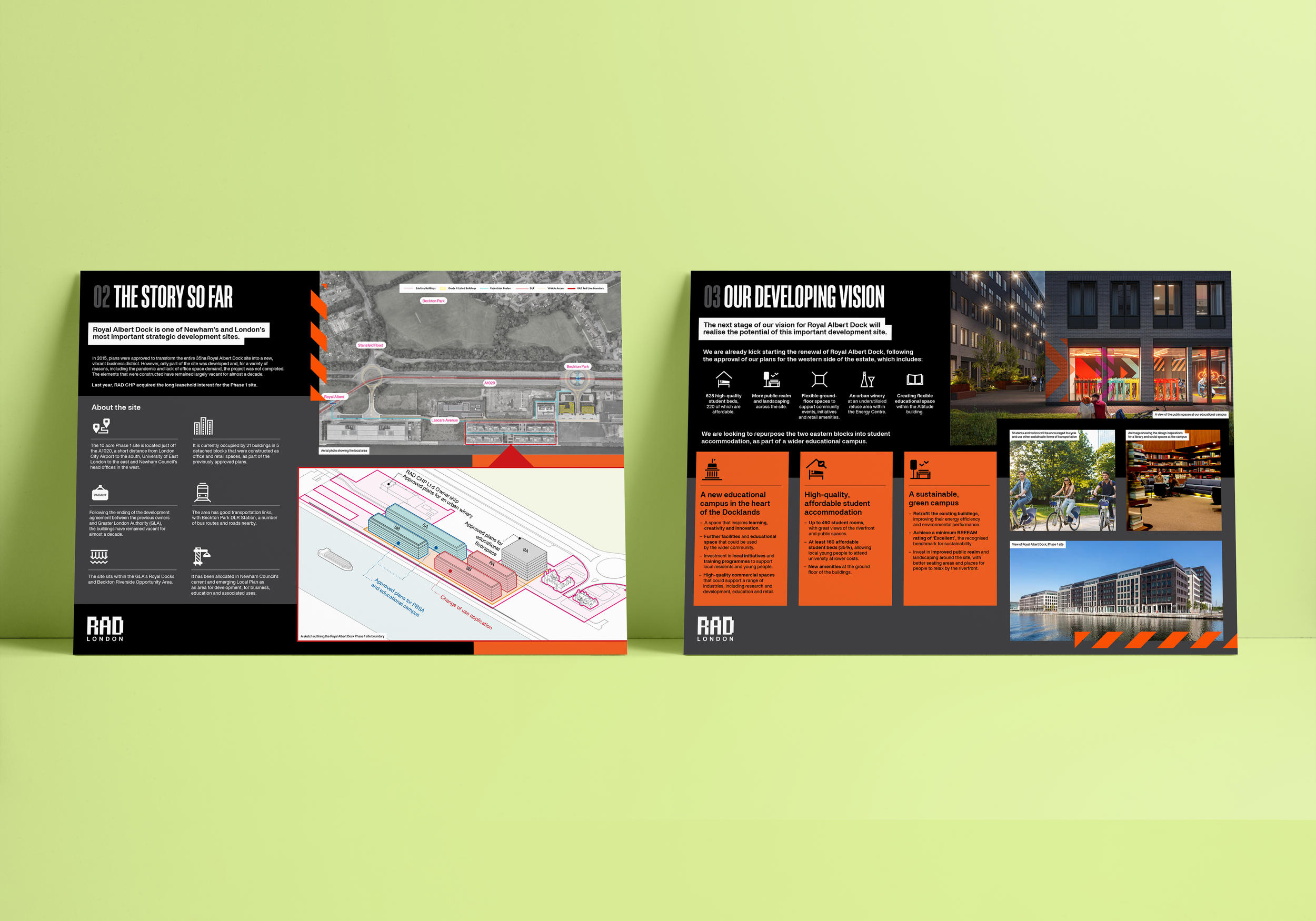 RAD CHP is leading the renewal of Royal Albert Dock Phase 1 and 2, delivering a mixed-use development that includes a new educational campus, student accommodation, community spaces, and a retrofit-first approach to sustainability.